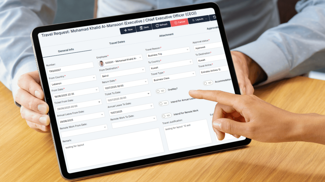 What it does: ESS requests with multi-step approvals, conflict checks, and notifications.